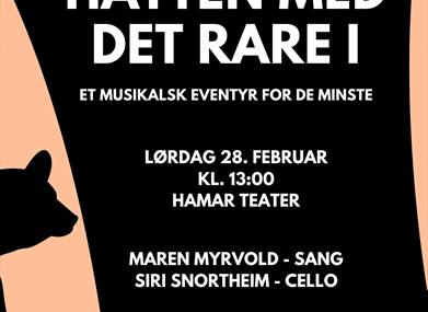 HATTEN MED DET RARE I er en interaktiv konsert med den klassiske duoen SOPRAN & CELLO. Sammen med barna trekker de to musikerne ting opp av farfars store flosshatt, og slik nøstes historien om Hatten med det rare i og alle som bor i den opp. I forestillingen får både voksne og barn høre kjente sanger og klassisk musikk gjennom fortelling og teaterlek. Konserten passer best for de minste barna, og varer i ca 30 minutter.