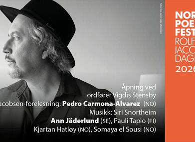 Offisiell åpning av festivalen ved ordfører i Hamar Vigdis Stensby. Pedro Carmona-Alvarez holder årets Rolf Jacobsen-foredrag, om sine perspektiver rundt poesi og Rolf Jacobsens forfatterskap.