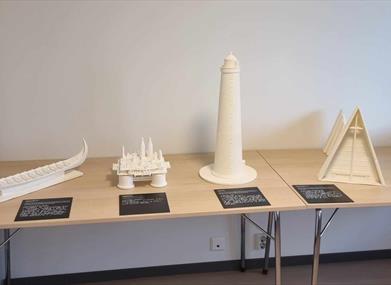 Innhold: Taktile 3D-printede modeller av kjente norske landemerker og konstruksjoner.