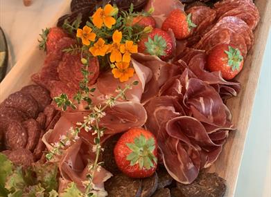 Her er noen av leverandørene de har varer fra: Monssveen Gaard, Brimi Sæter, Møystad gård, Balke-kaffe på Stange, Braastad epler, Aukrust gård- & Urteri, Øyens hjemmebakeri, Valdresost, Bjorli fjellmat.