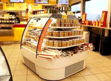 Her selges det også kortreiste matvarer, som ost, honning, syltetøy, saft og spekepølse.