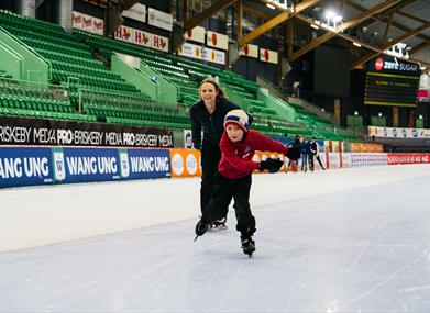 I isperiodene er det mulig for alle å kunne gå på skøyter i Vikingskipet. Det er egen skøyteutleie og skøytebutikk i hallen.